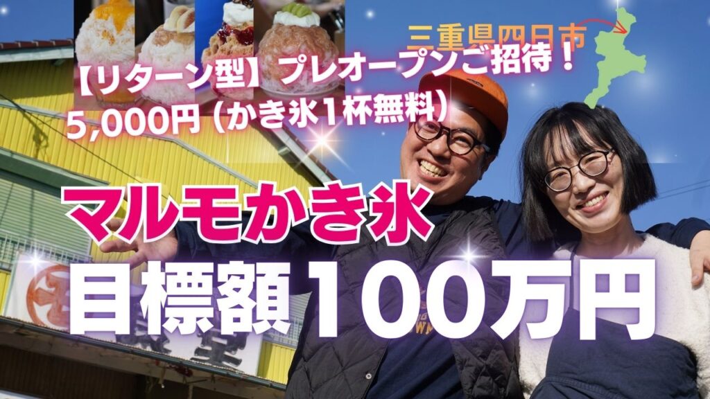 この度、私たちは長年の夢であった「四日市の憩いの場へ進化!通年・平日も楽しめる かき氷屋マルモ改装プロジェクト」を実現するため、クラウドファンディングを開始することになりました!皆さまの温かいご支援とご協力をお願いしたく、このご案内をさせていただきました。私たちの挑戦が、きっと皆さまの心にも温かい光を灯せると信じています。